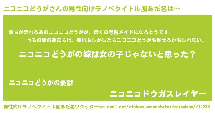 | 胡散臭い通販商品みたいなあだ名 | 『伝統あるサプリメント…その名も「ニコニコどうが」』 |