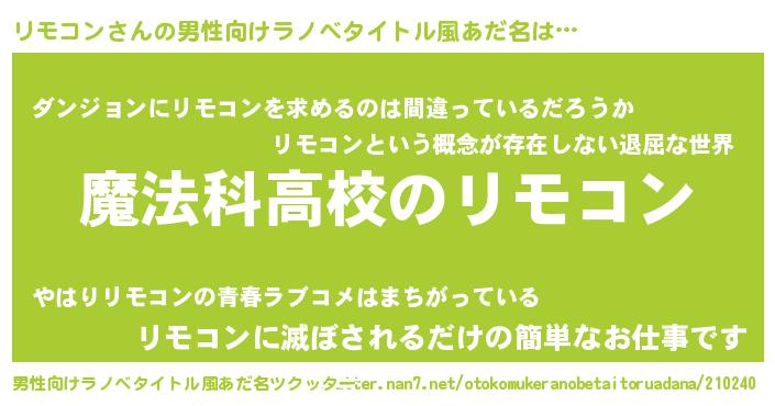 | 女子向けラノベタイトル風あだ名 | 『リモコンなんてお断りですっ。』 |