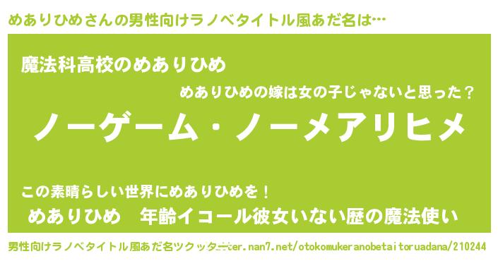 | 胡散臭い通販商品みたいなあだ名 | 『お金では代えられないマグネット磁石…その名も「めありひめ」』 |