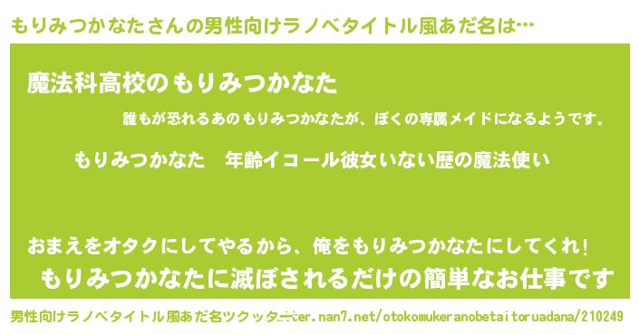 | 肩書あだ名 | 『もりみつかなた中将』 |