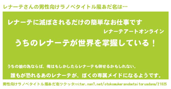 レナーテさんの男性向けラノベタイトル風あだ名をツクッター!