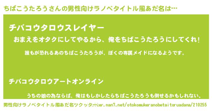 | 意味不明あだ名 | 『永久保存ちばこうたろう』 |
