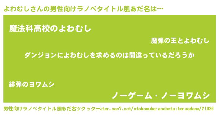 | ヒーロー風カッコイイあだ名 | 『暗黒騎士ヨワ』『超時空戦士ヨワムシ』 |