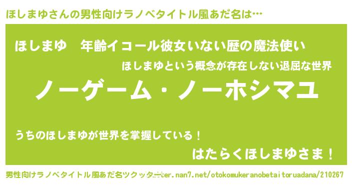 | 伝説のあだ名 | 『救世主となる技術者ほしまゆ』 |
