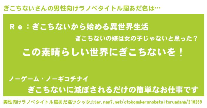 ぎこちないさんの男性向けラノベタイトル風あだ名をツクッター!