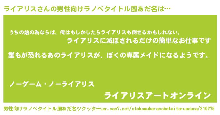| 女子向けラノベタイトル風あだ名 | 『異世界でカフェライアリスを開店しました。』 |