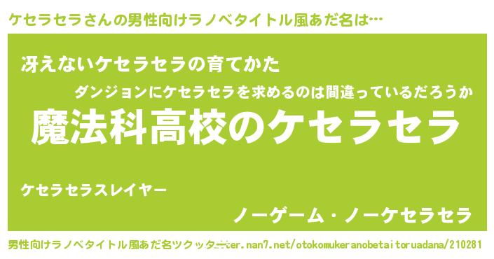 | ヒーロー風カッコイイあだ名 | 『サイバー戦士ケセラセラ』 |