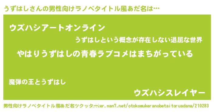 | 女子向けラノベタイトル風あだ名 | 『うずはしの雑貨屋さん』 |