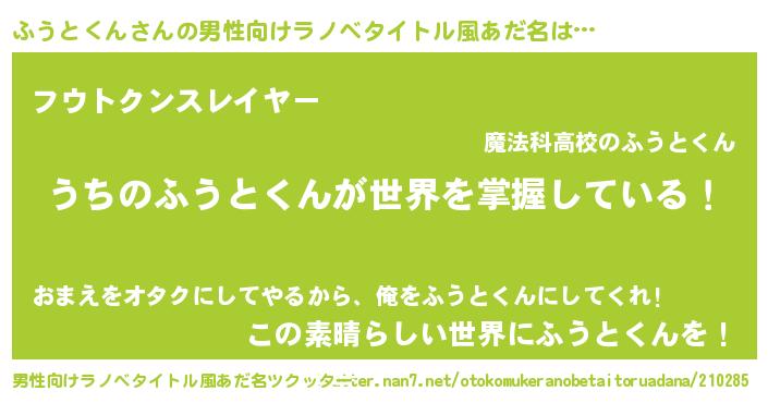 | 胡散臭い通販商品みたいなあだ名 | 『あなたにだけ特別に提供する100年もののヴィンテージワイン…その名も「ふうとくん」』 |