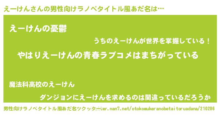 | 肩書あだ名 | 『えーけん総理大臣』『えーけん社長令嬢』 |