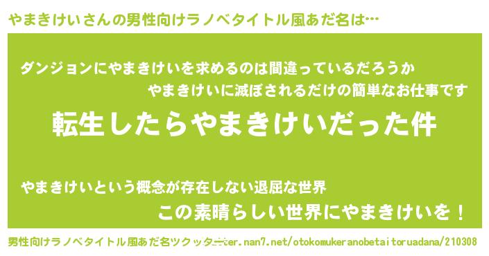 | 女子向けラノベタイトル風あだ名 | 『やまきけいの玉の輿計画!』 |