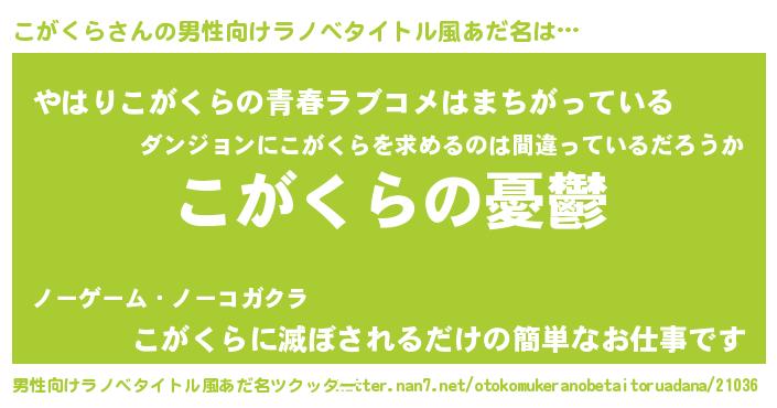 | 女子向けラノベタイトル風あだ名 | 『こがくら姫と円卓の騎士』 |