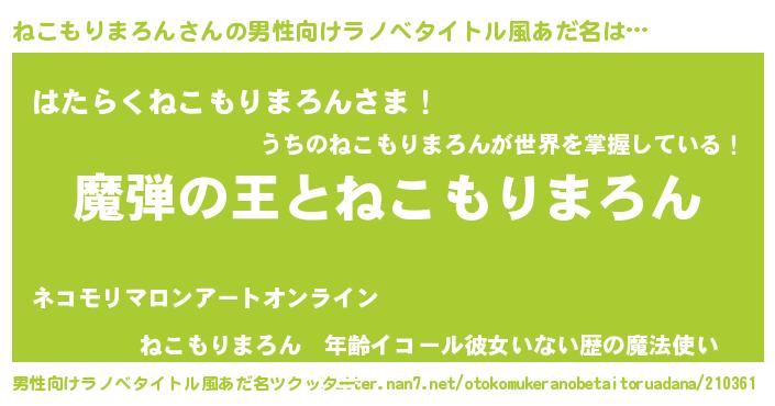 | 欧米人風あだ名 | 『ダレノガレねこもりまろん』 |