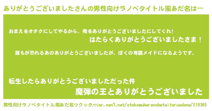 | 胡散臭い通販商品みたいなあだ名 | 『来世でも幸せになれる招き猫…その名も「ありがとうございました」』 |