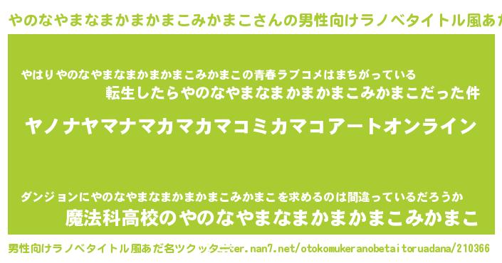 | 欧米人風あだ名 | 『マイケルやのなやまなまかまかまこみかまこ』 |