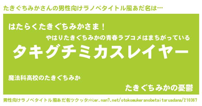 | ヒーロー風カッコイイあだ名 | 『スーパータキグチミカ』 |