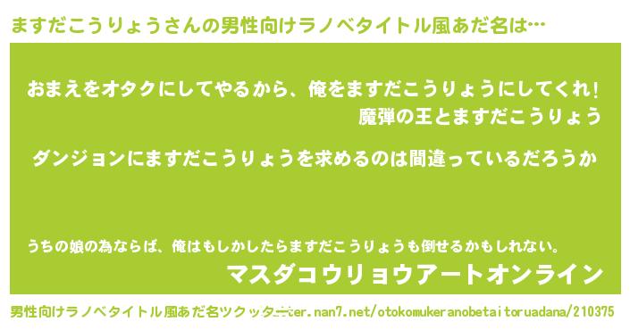 | 胡散臭い通販商品みたいなあだ名 | 『信頼と実績のペンダント…その名も「ますだこうりょう」』 |