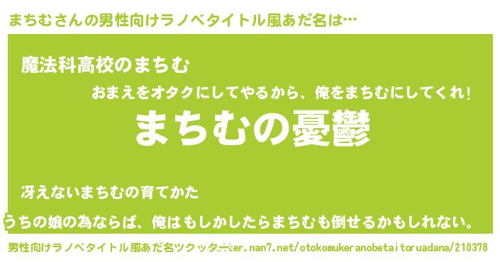 | 女子向けラノベタイトル風あだ名 | 『(仮)まちむのやんごとなき事情』 |