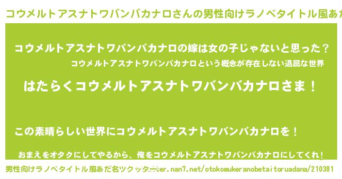 | 胡散臭い通販商品みたいなあだ名 | 『信頼と実績のペンダント…その名も「コウメルトアスナトワバンバカナロ」』 |