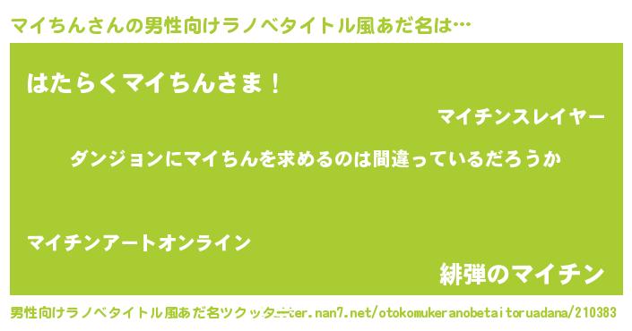 | 胡散臭い通販商品みたいなあだ名 | 『伝統あるサプリメント…その名も「マイちん」』 |