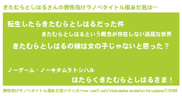 | 女子向けラノベタイトル風あだ名 | 『きたむらとしはる様がみてる』 |