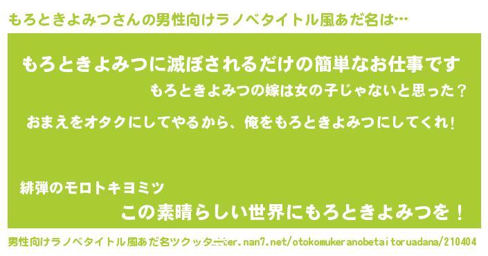 | 胡散臭い通販商品みたいなあだ名 | 『100人中100人が認めたマグネット磁石…その名も「もろときよみつ」』 |