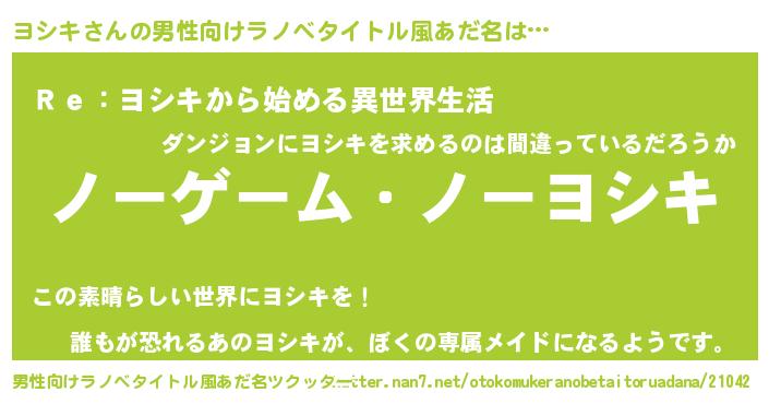 | ヘコむあだ名 | 『ヨシキ(笑)』『ヨシぷりん』 |