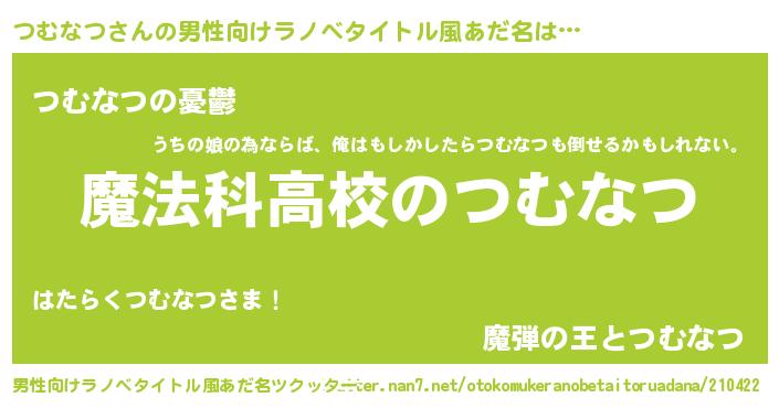 | 女子向けラノベタイトル風あだ名 | 『つむなつアンティーク』 |