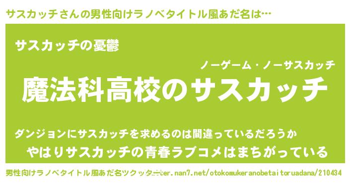 | 女子向けラノベタイトル風あだ名 | 『サスカッチアンティーク』 |