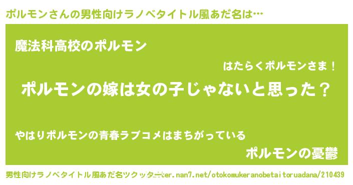 | 女子向けラノベタイトル風あだ名 | 『ポルモンの卵を拾いまして』 |