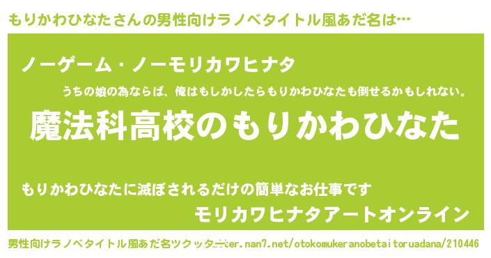 | 女子向けラノベタイトル風あだ名 | 『もりかわひなたなんてお断りですっ。』 |