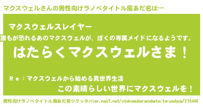 | 伝説のあだ名 | 『聞きしに勝る勇者マクスウェル』 |