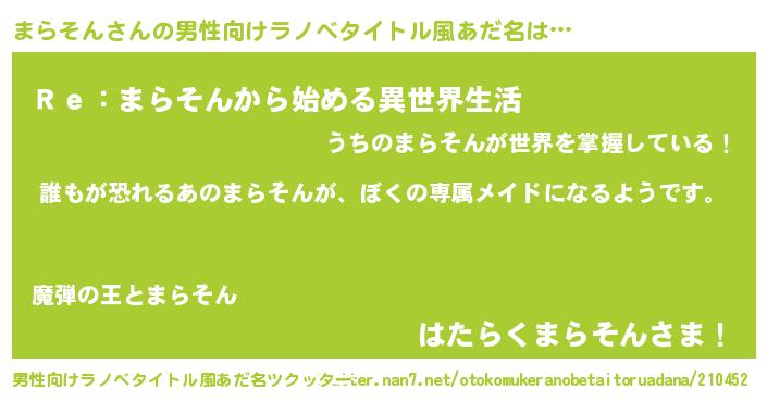 | ヘコむあだ名 | 『まらそん(小並感)』『まらもー』 |