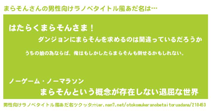 | 胡散臭い通販商品みたいなあだ名 | 『世界が平和になる高級そうな壺…その名も「まらそん」』 |