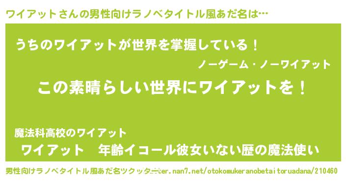 | 意味不明あだ名 | 『住所不定無職ワイアット(89歳)』 |