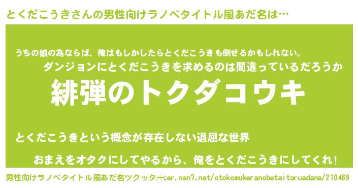 | 胡散臭い通販商品みたいなあだ名 | 『幸せが訪れる高級そうな絵画…その名も「とくだこうき」』 |