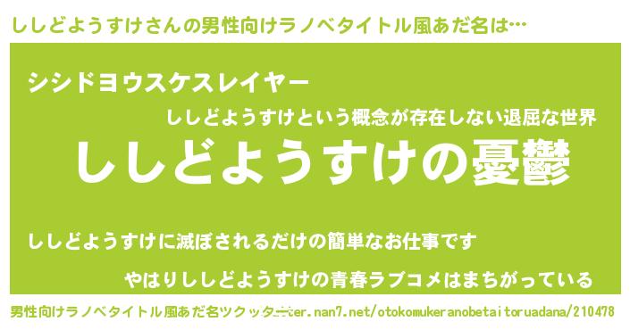 | ヒーロー風カッコイイあだ名 | 『スーパーシシドヨウスケ』 |