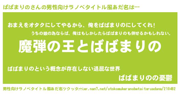 | 女子向けラノベタイトル風あだ名 | 『乙女ゲームの破滅フラグしかない悪役ばばまりのに転生してしまった…』 |