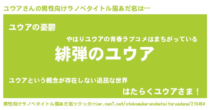 | 胡散臭い通販商品みたいなあだ名 | 『必ず成功する霊験あらたかなお札…その名も「ユウア」』 |