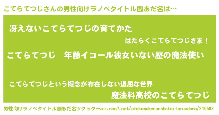 | 女子向けラノベタイトル風あだ名 | 『こてらてつじの玉の輿計画!』 |
