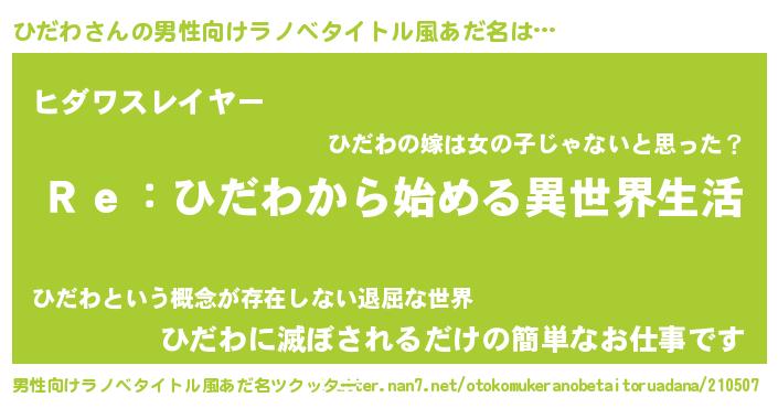 | 意味不明あだ名 | 『自称ひだわ』『エリンギ科ひだわ属』 |