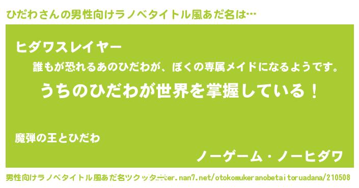 | ヒーロー風カッコイイあだ名 | 『慈愛の使者ひだわ』『ネオヒダワ』 |