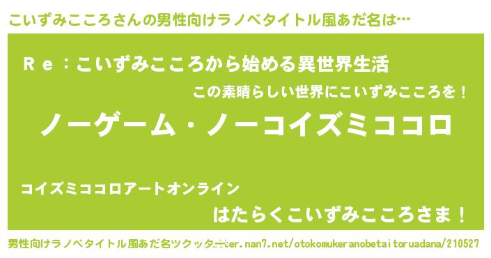 | 女子向けラノベタイトル風あだ名 | 『こいずみこころ恋絵巻』 |