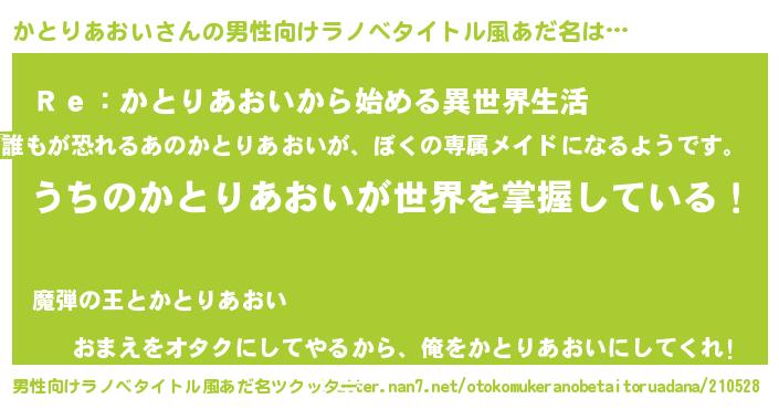 | 意味不明あだ名 | 『自称かとりあおい』 |