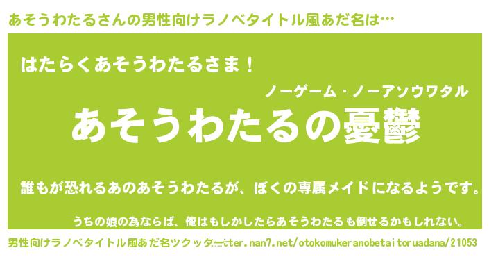 | ヒーロー風カッコイイあだ名 | 『スーパーアソウワタル』『銀牙騎士アソ』 |