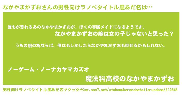 | 女子向けラノベタイトル風あだ名 | 『なかやまかずお伯爵の花嫁』 |