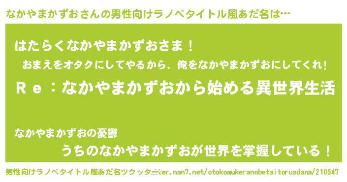 | 女子向けラノベタイトル風あだ名 | 『なかやまかずおストレイドッグス』 |