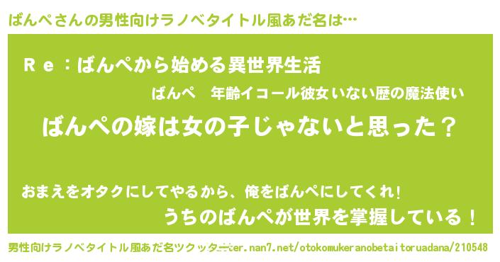 | 胡散臭い通販商品みたいなあだ名 | 『伝統あるサプリメント…その名も「ばんぺ」』 |