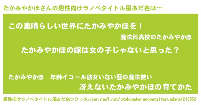 | 意味不明あだ名 | 『とにかく怪しいたかみやかほ』 |