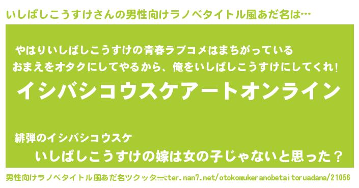 | 胡散臭い通販商品みたいなあだ名 | 『モテモテ間違いなしブレスレット…その名も「いしばしこうすけ」』 |